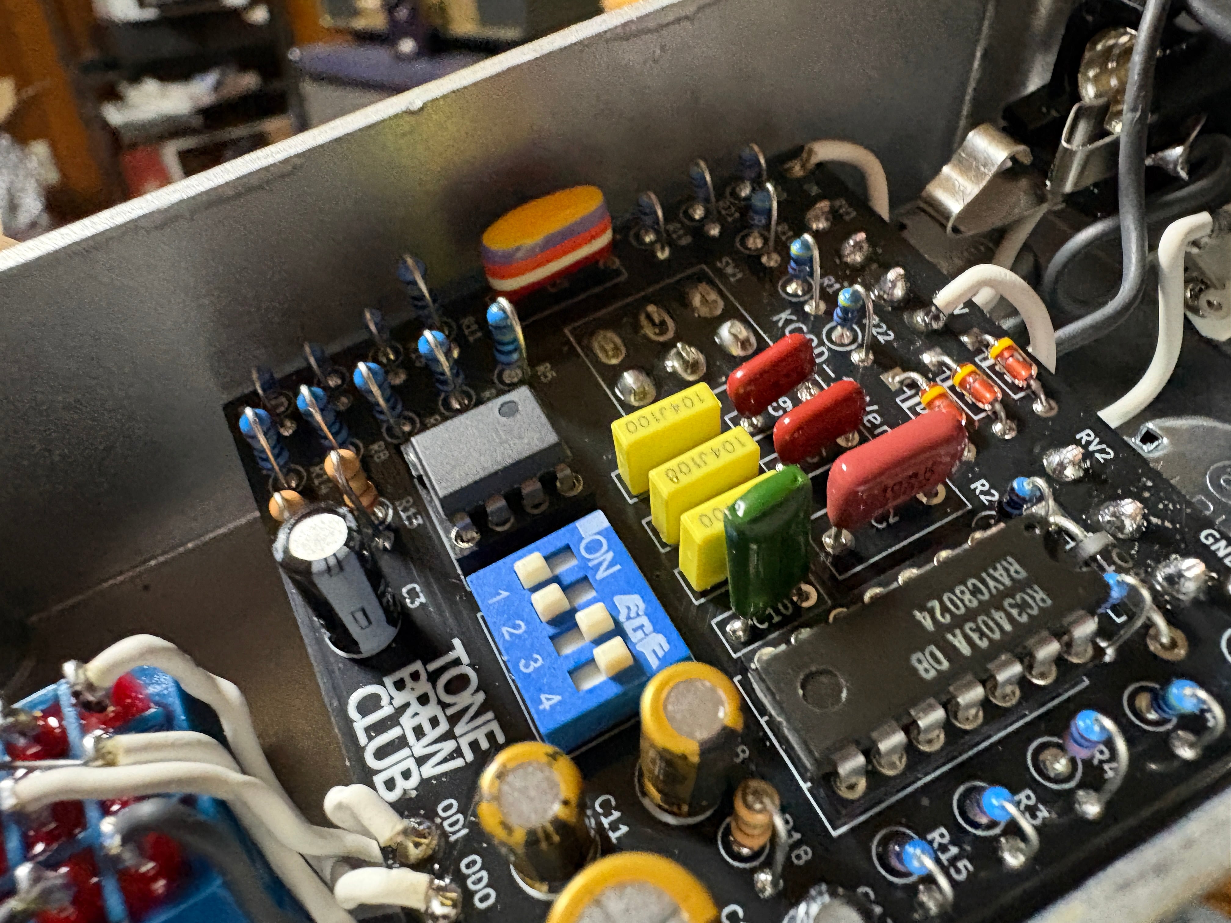サウンドの肝となるオペアンプにはレセイオン製 RC3403ADBを使用しました。