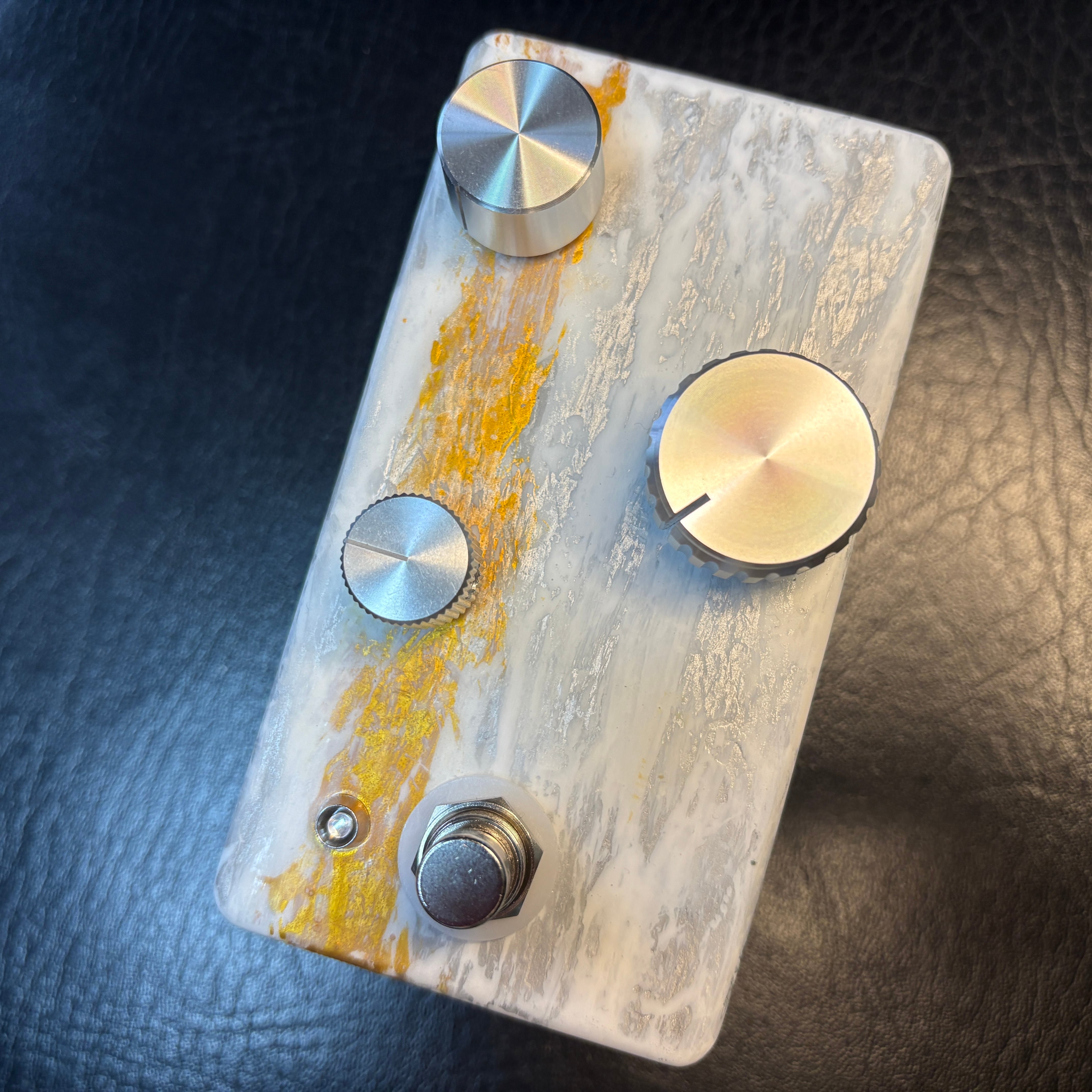 一般的なファズノブはmaxにするのが主流で、少しでも絞ると一気に音の腰が抜けてしまいますが、Homebrewing Fuzzのファズノブは効きが広く、微調整が可能です。